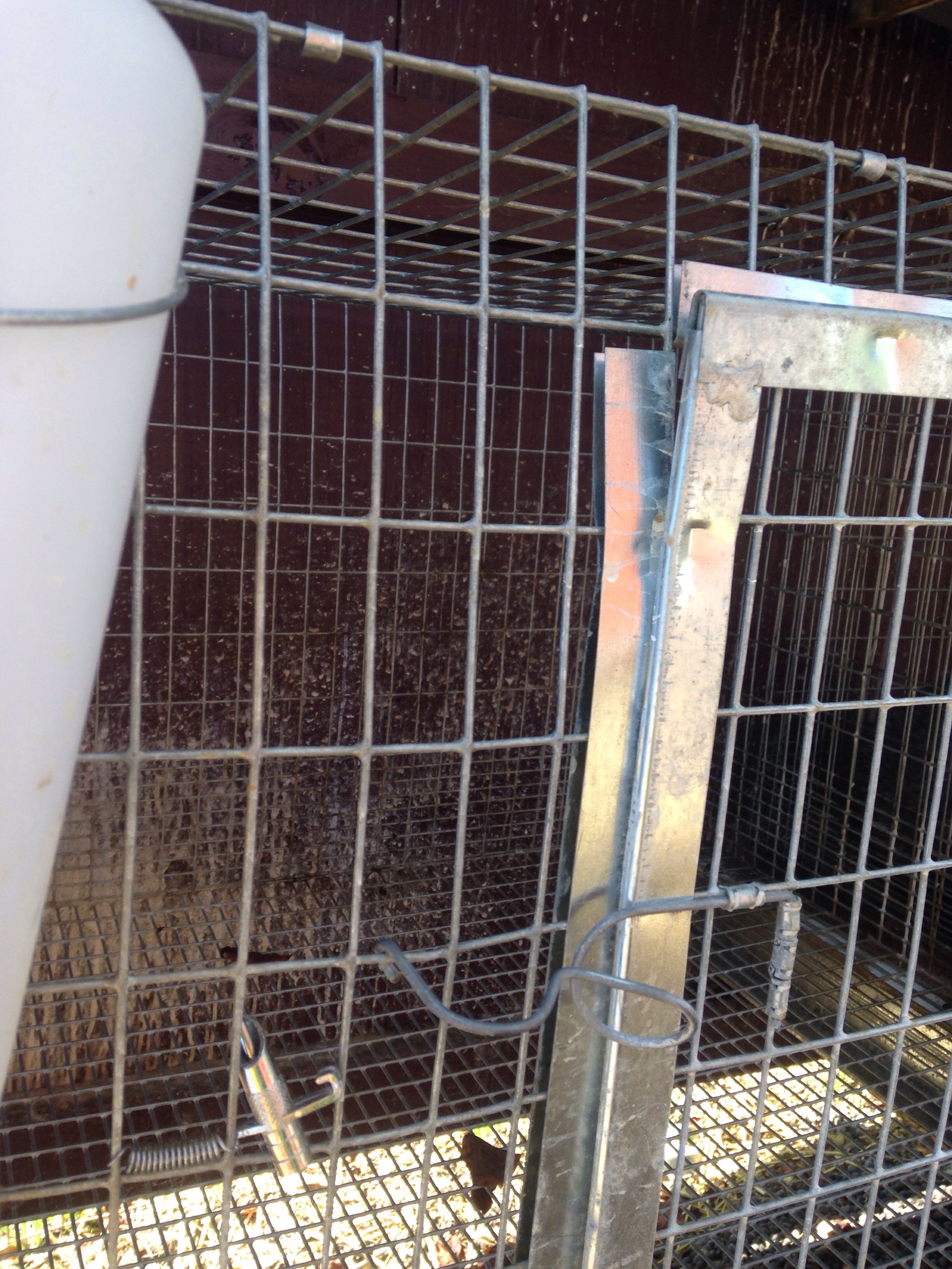 Below, you can see where the dog tore down the automatic watering system we had in place. It broke into Leah’s cage and popped open the lock.