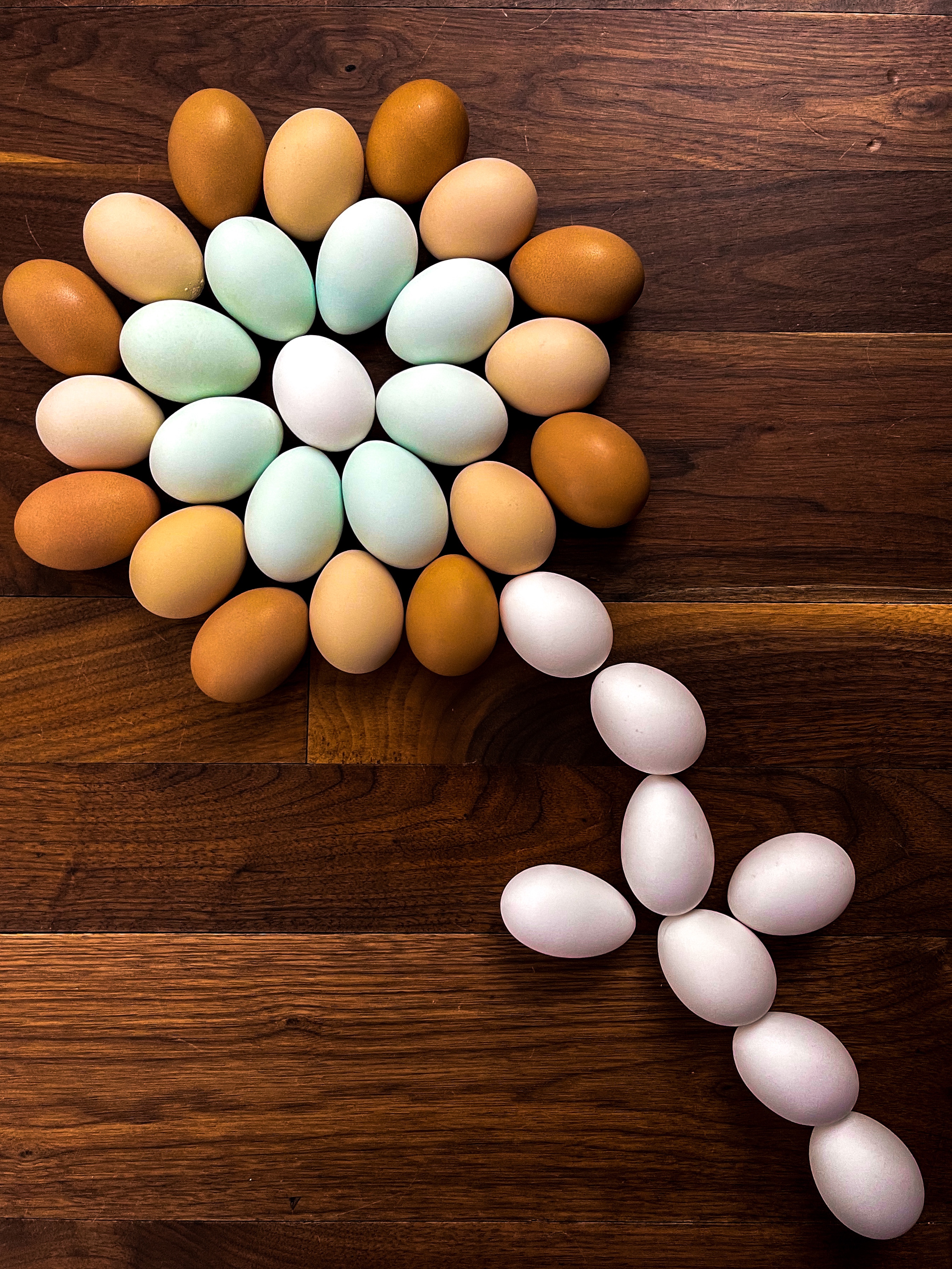 From this mixed pen, we will collect eggs for Olive/Easter Eggers (only select the blue eggs for this batch) and for our backyard mixes (all colors possible).